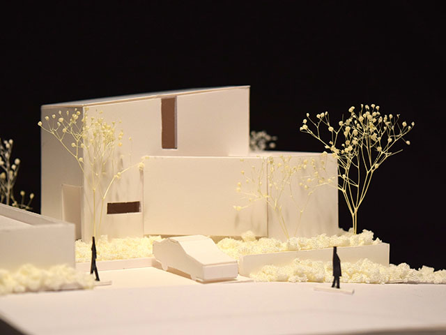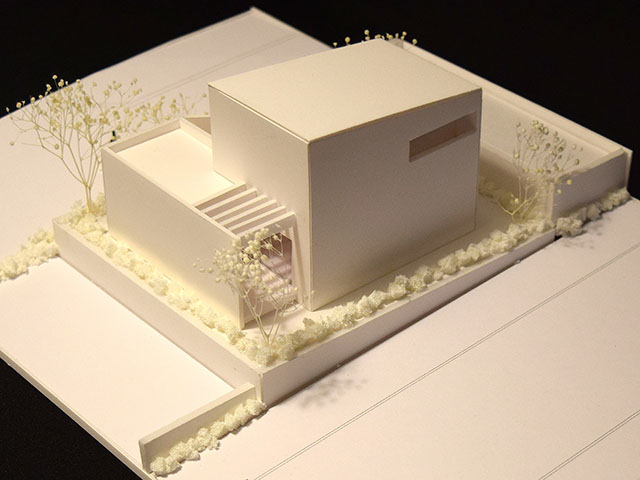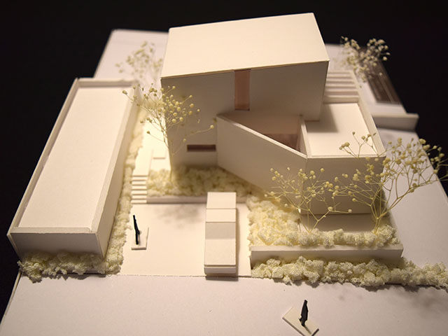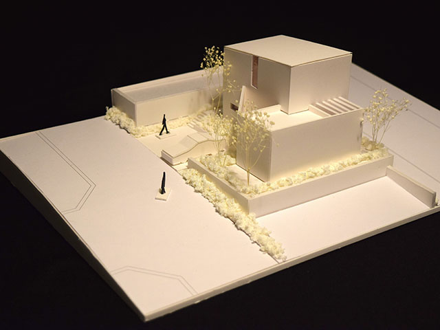 建物と塀が一体的につながりながら、2つの庭を囲い込むような住まいの計画。