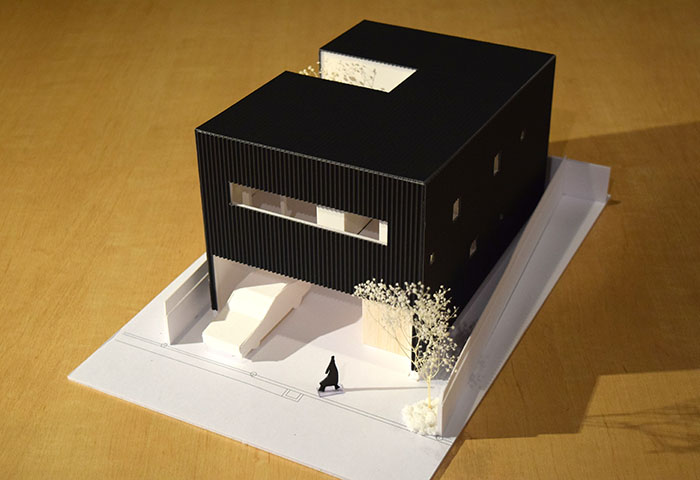アクセントに使う木材や、樹木の存在が建物を柔らかく見せることに寄与することだろう。