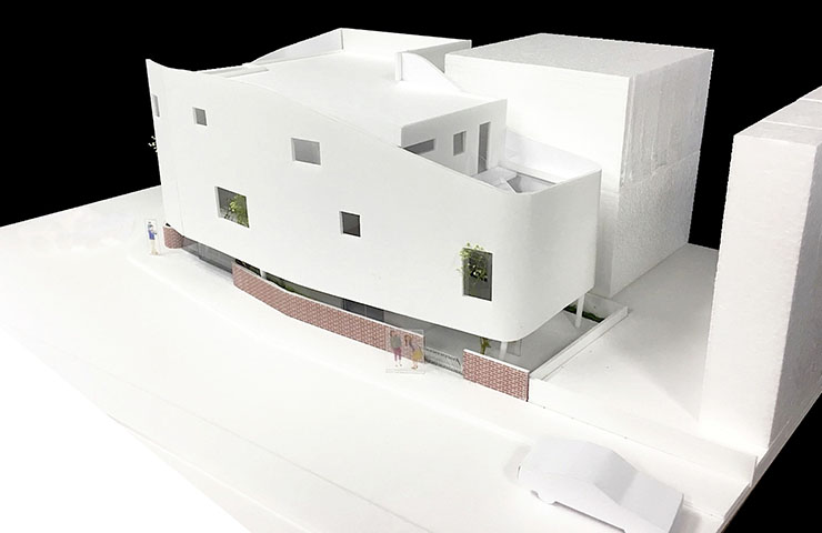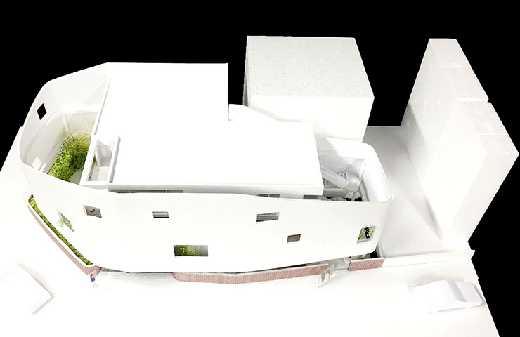 皮膜は、音に対する配慮・光や風を十分に取り入れる役割・プライバシーへの配慮、圧迫感がなく街のランドマークのような存在となること、それらを考慮して計画を進めた。