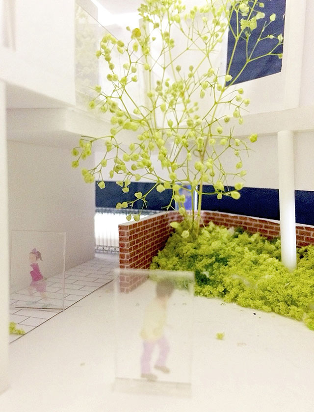 そこで、騒音対策として周囲に対して閉じた建物でありながら、閉塞感を感じない建物を考えることに至った。