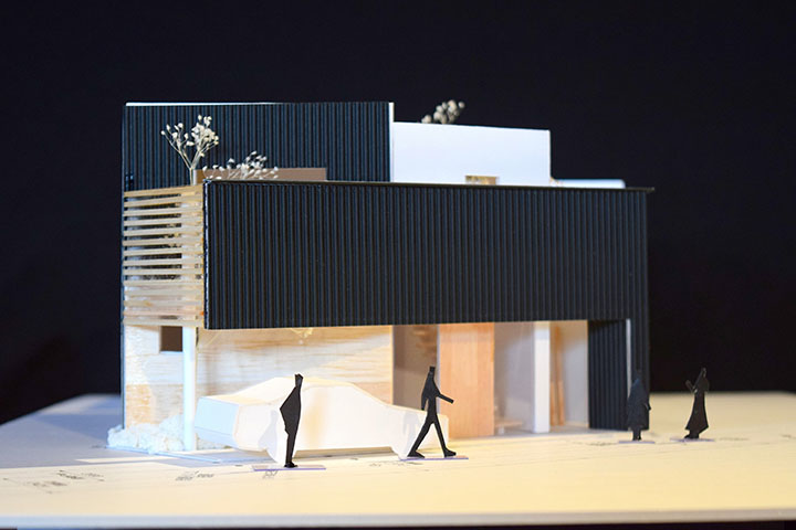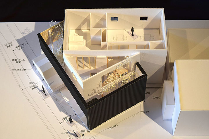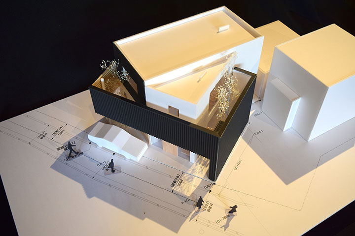 2つのボリュームを包み込むように設けた外壁は、プライバシーを確保し、カーテンのいらないのびのびとした明るい空間を提供できます。また、デザインにおいても個性的な表現ができる要素となります。