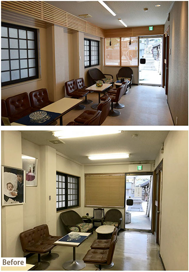 待合いスペースも明るく落ち着いた雰囲気になり、婚礼・お宮参り・七五三、一生に一度の記念を残す利用者にとって良い思い出作りに寄与できればと願っている。
